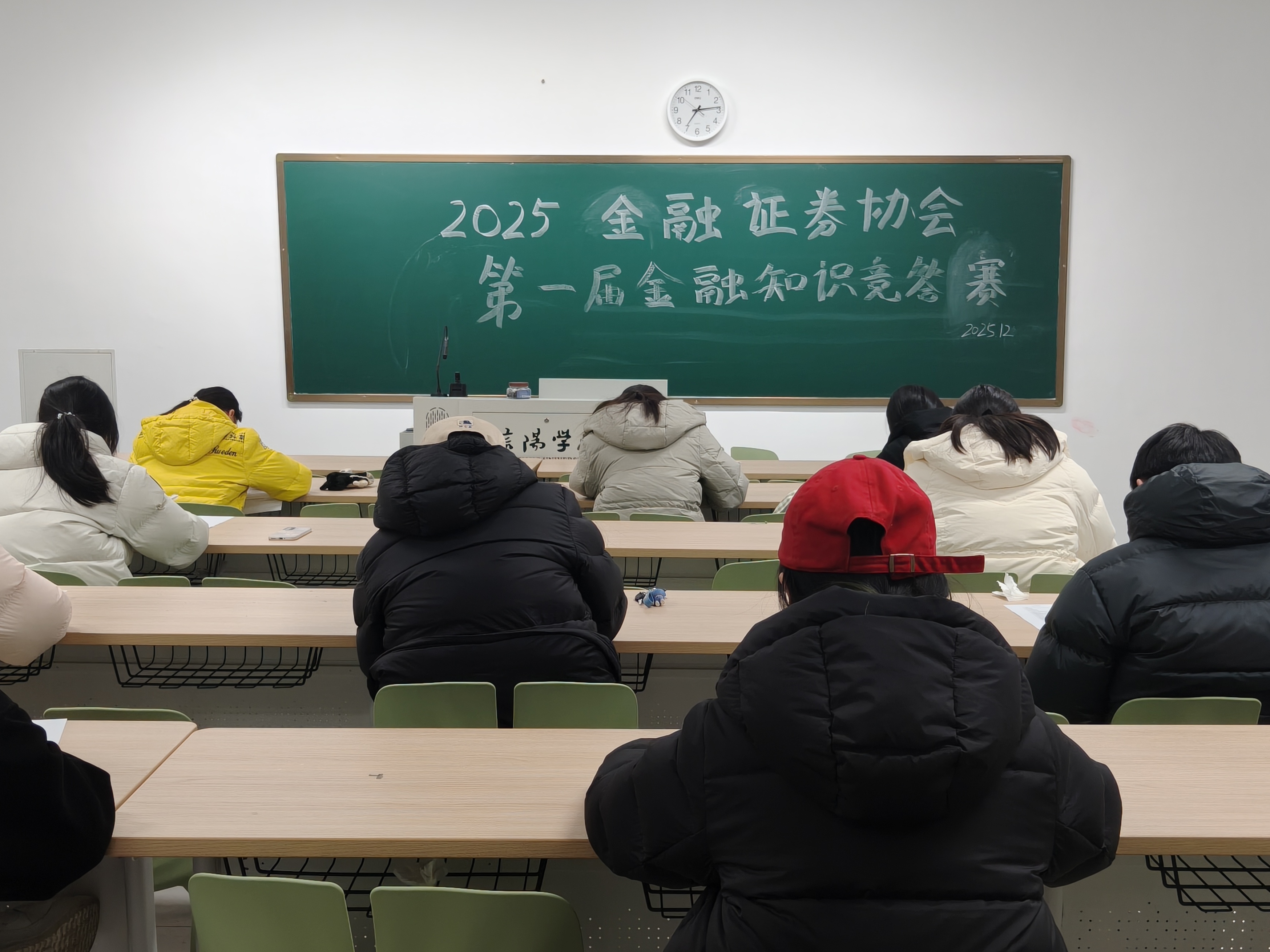 为丰富校园文化生活,提升学生金融素养与风险防范意识,12月28日晚,太阳网集团tcy8722金融证券协会在教三楼412教室举办2025年第一届金融知识竞答赛。金融证券协会全体成员踊跃参与,在脑力比拼中感受金融魅力、锤炼专业本领。