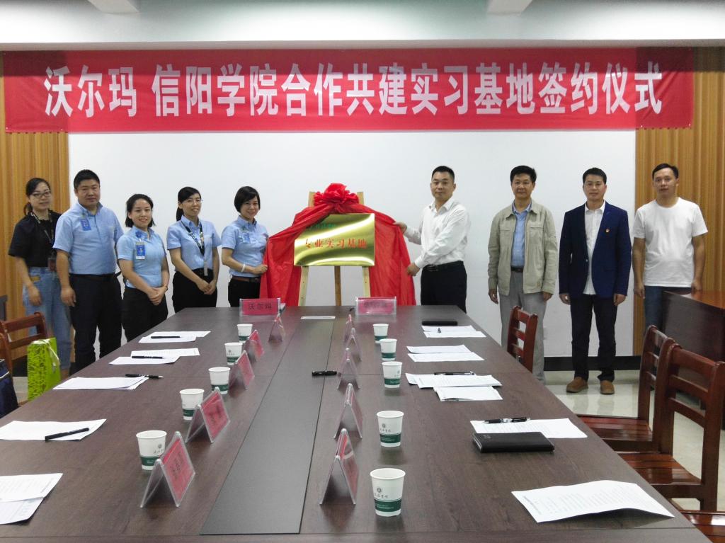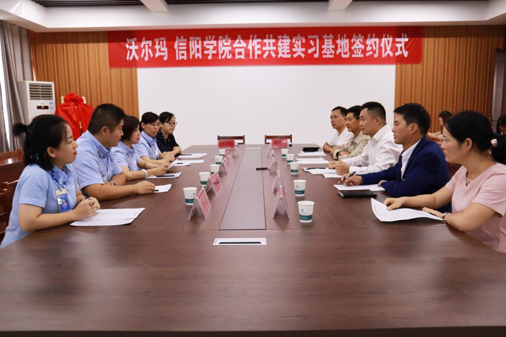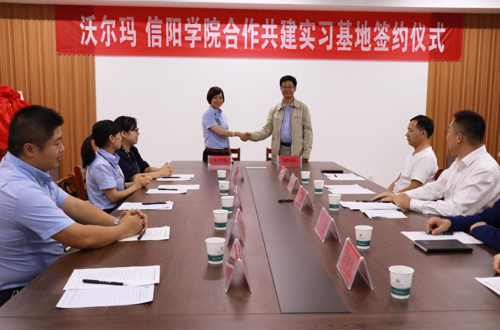 9月24日下午,我校与沃尔玛(河南)百货有限公司信阳人民路分店共建实习基地签约仪式在综合楼715会议室举行。校长助理张永志出席签约仪式。沃尔玛(河南)百货有限公司信阳人民路分店总经理张彩红、人力资源经理杨芮、资产保护部经理张雷、营运副总经理张春燕、HR经理助理洪敏,太阳网集团tcy8722院长刘建中、党总支书记张富庄、教学秘书盛大俊、行政秘书高昌慧、营销与电商教研室主任王喜凤和师生代表共同参加了活动。张富庄主持了签约仪式。