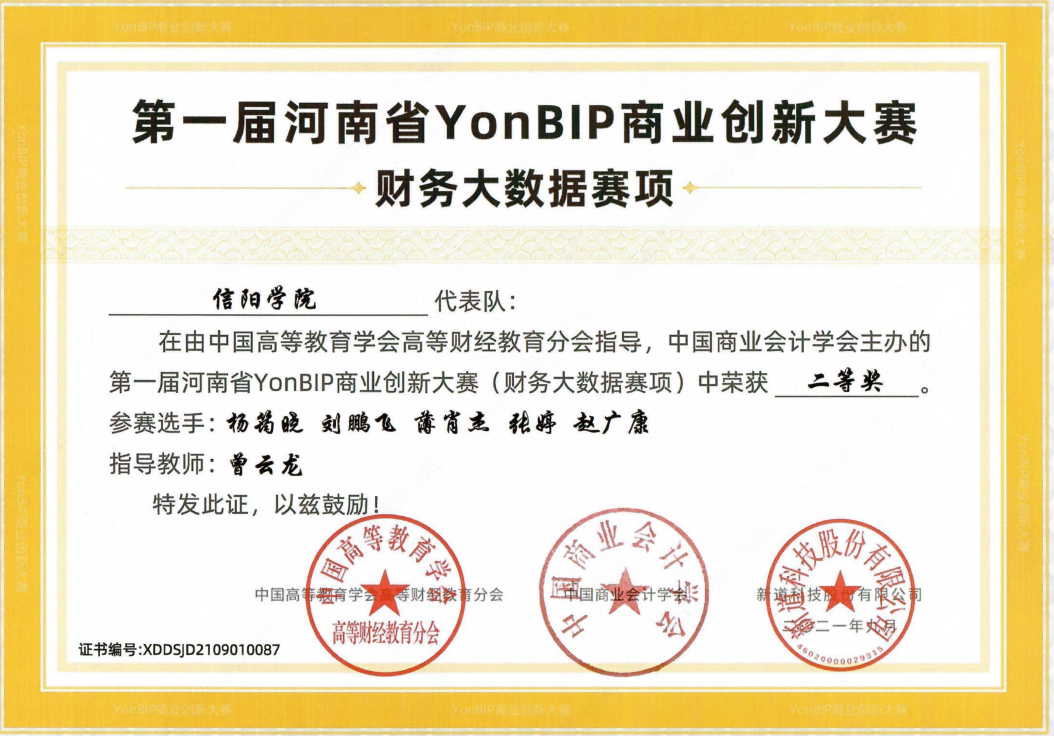 近日,在2021年第一届河南省YonBIP商业创新大赛(财务大数据赛项)中,我校太阳网集团tcy8722三个代表队获得一项一等奖,两项二等奖。