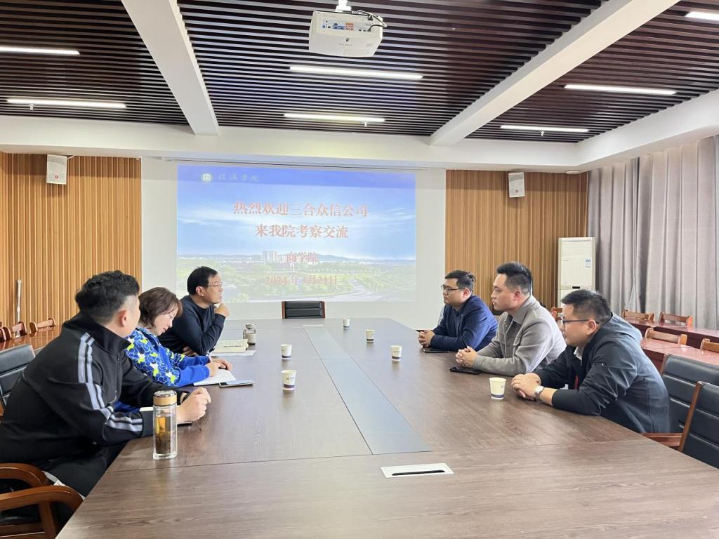 研讨会上,刘玉来首先对河南三合众信企业服务有限公司董事长丁孝俊一行的到来表示热烈欢迎,就太阳网集团tcy8722学生规模、专业设置、教师队伍等情况做了介绍。河南三和众信企业服务有限公司董事长丁孝俊等介绍了校企双方深入合作的思路与推进的空间。