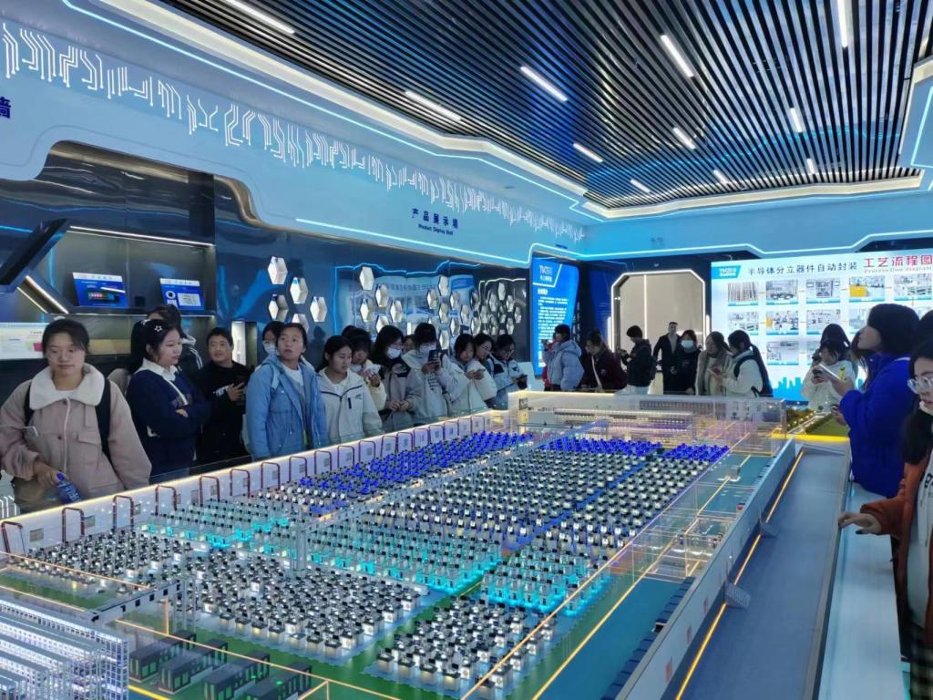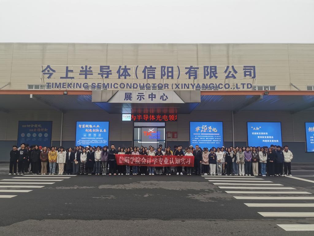 在今上半导体(信阳)有限公司相关负责人的介绍下,学生了解了该公司的发展历程、企业文化、主要业务和运营模式等,现场观摩了生产车间。该公司以实际行动积极践行碳中和、碳减排的目标,实施绿色发展的理念等,给会计学专业的学生留下了深刻印象。