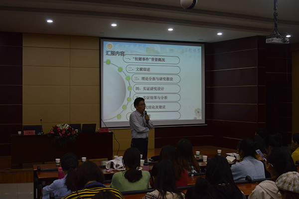 刘建中在总结报告中指出,胡教授的报告结合当前热点事件,通过真实案例以实证研究方法进行深入分析,检验了在基础理论支撑下各项假设的成立结论,报告语言通俗易懂,很接地气,对老师和同学们的学术研究和毕业论文的写作都有较为实际的参考价值。