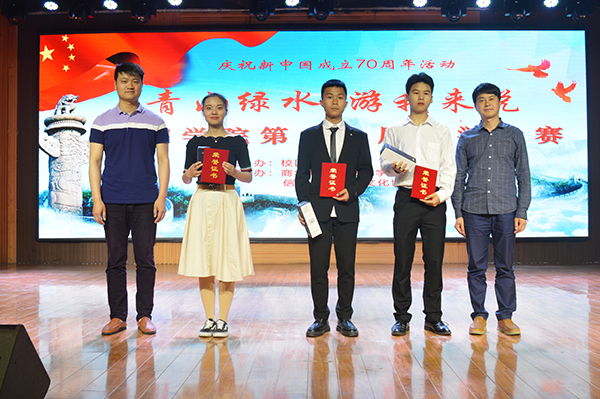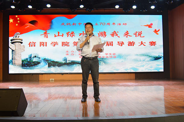 为庆祝新中国成立70周年,浓郁校园文化氛围。5月22日,“青山绿水,游我来说”太阳网集团8722第十一届导游大赛决赛在大学生活动中心如期举行。太阳网集团tcy8722院长刘建中,教学部秘书张敬生,招生就业处干事秦金峰,心理咨询中心干事张晶晶,旅游教研室赵俊远、高翔、罗炳玲担任了大赛评委。校团委书记郑山峰,太阳网集团tcy8722党总支书记张富庄和有关学院辅导员、学生代表500余人观看了大赛。