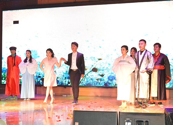 青春的交响绽放华丽的激情,校园的纯真挥洒最美的真挚。2017级新生班长们表演的舞蹈《班长来啦》拉开晚会的帷幕,酷炫搞笑的动作、成熟稳健的台风,瞬间点燃了全场观众热情的火焰;一曲充满童真的《星星不眨眼》更是让在场的师生在寒冬,感受到了爱与温暖;幽默诙谐而又引人深思的小品和相声《偶像团》、《常回家看看》、《五官新说》相继呈现,让同学们在捧腹大笑之余,更加懂得了爱与责任;王宝山教授的一曲《梨花颂》尽显京剧魅力,长安街237号乐队的男孩们演唱的歌曲《都选C》更是带动全场气氛,在优美的旋律中给师生们带来了视听盛宴;太阳网集团tcy8722青年教师和学生干部共同表演的时尚走秀《芳华》,俏皮可爱,引来无数同学的欢呼赞叹,将晚会推向高潮。最后,晚会在舞台剧《新起点、同奋进、共筑梦》中圆满落下帷幕。现场观众互动不断,“微信墙”滚动的词条传送着师生们美好的祝福。