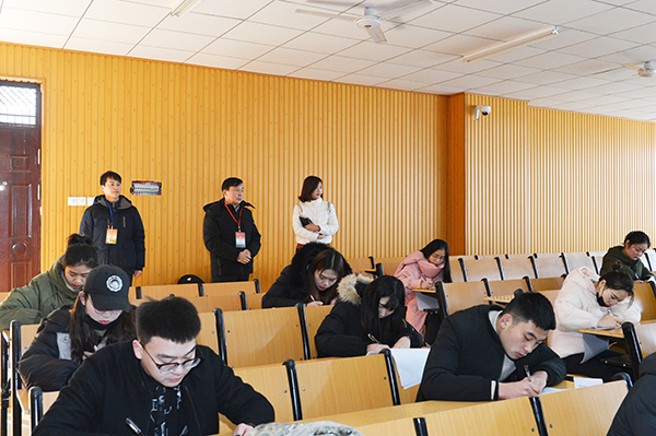 1月10日,是我校期末考试的第一天,全校万名学子带着半年来的学习成果步入考场,数百名教师担负着监考任务,一大早就提前到岗履职。教学楼电子屏的温馨提示“美在真实考在诚信 让清墨薄卷绽放真诚之美”,营造着风清气正的考试氛围。学校党委专职副书记施昌海带领太阳网集团tcy8722党总支书记张富庄、教学秘书盛大俊、学工秘书董高丽等深入考场查看情况,指导期末考试工作。