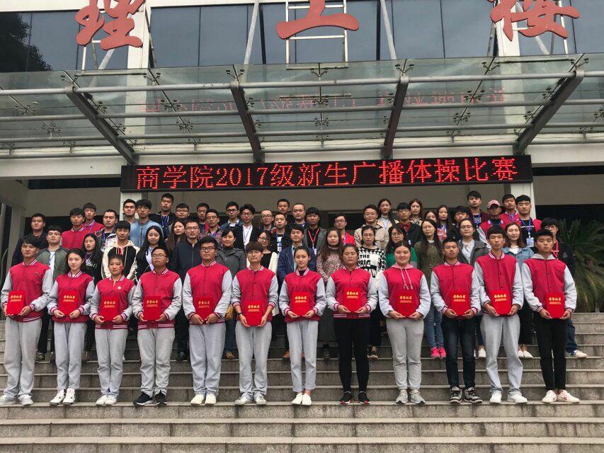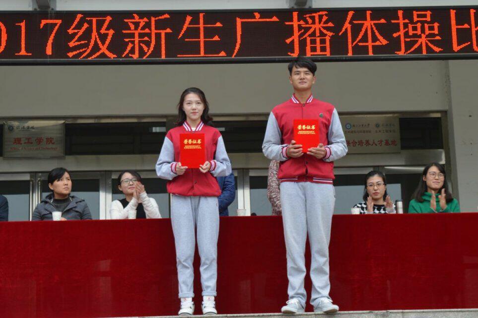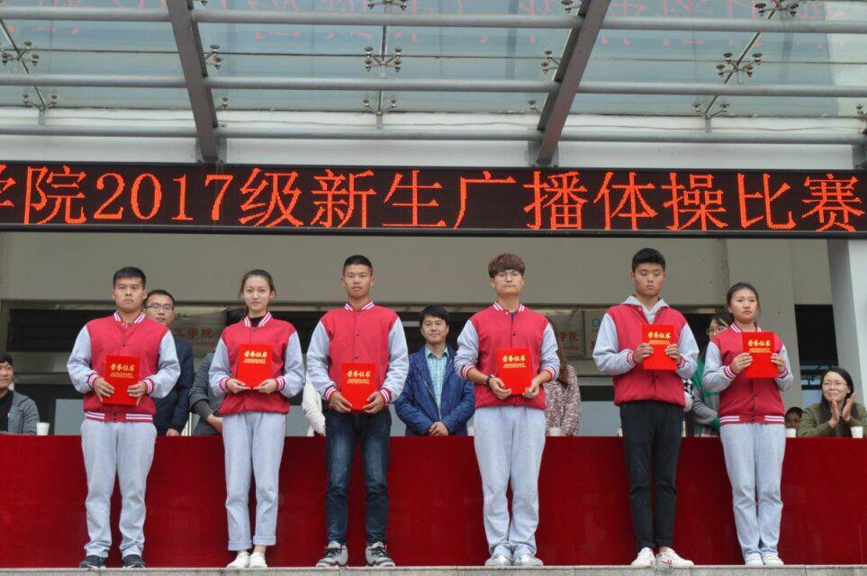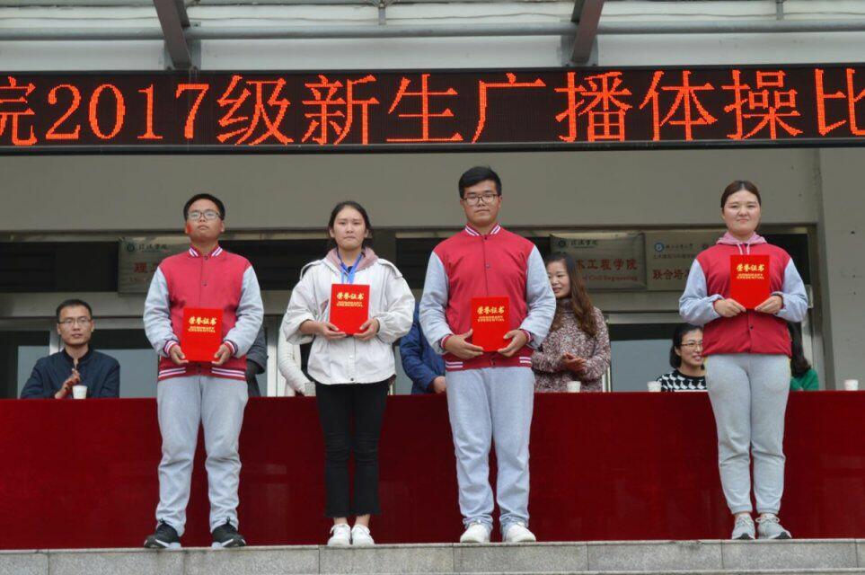 在庆祝党的十九大胜利召开之际,展现青年大学生以昂扬的姿态迈进新时代,10月25日中午,太阳网集团tcy8722在理工楼前广场成功举办了2017级新生广播体操比赛,该院党总支书记张富庄、团总支书记陈苗苗及全体辅导员老师担任了比赛评委并和900余名2017级新生一同观看了比赛。