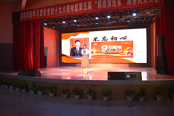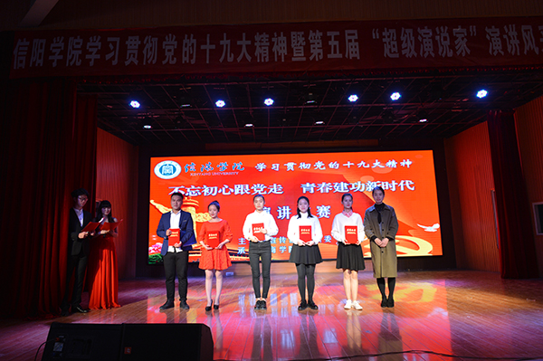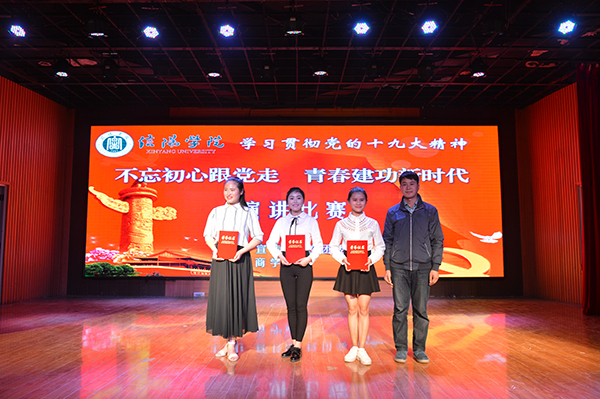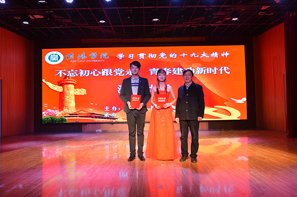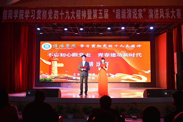 经过前期紧张而又激烈的初赛与复赛,共有10名优秀学生脱颖而出进入总决赛。本次演讲风采大赛以“不忘初心跟党走,青春建功新时代”为主题,分主题演讲和才艺展示两部分进行。主题演讲环节,选手们依次登场,结合学习十九大会议精神情况,或以真挚情感追忆了我党从建立到带领中华民族一步步走向新时代的不凡征程;或结合自身的大学生活和青春奋斗故事,表达对党、对国家的热爱之情,以及青年学子接班中国特色社会主义事业、助力早日实现民族复兴的伟大中国梦的坚定信念。文学院2016级汉语言文学本科8班的张瑾表示,青年是祖国的未来和民族的希望,我们的梦想凝聚起来就是伟大的中国梦,号召当代青年爱党爱国,用青春、热血、激情和奉献实现伟大的中国梦;外国语学院2017级英语本科11班的陈丽号召大家不忘初心跟党走,坚定信念勇于开拓,在大学四年里不断提升自己,为共圆中国梦贡献力量,在建设中国特色社会主义的道路上披荆斩棘,斗志昂扬!