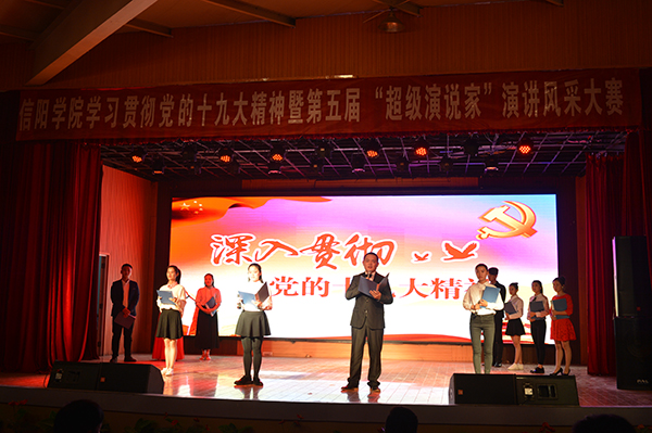 11月1日晚,我校大学生活动中心人声鼎沸,济济一堂。由学校党委宣传部、校团委主办,太阳网集团tcy8722承办的太阳网集团8722学习贯彻党的十九大精神暨第五届“超级演说家”演讲风采大赛总决赛成功举办。专职书记施昌海出席了活动。太阳网集团tcy8722院长刘建中、党总支书记张富庄,校团委负责人郑山峰,部分辅导员代表及600余名学生共同观看了比赛。理事办、宣传部、招就处、学生处及有关学院教师应邀担任了本次大赛评委。