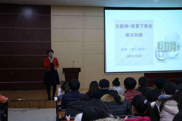 陈琳教授在《“互联网+”背景下商业模式》主题报告中,深入阐述了商业模式的定义,并指出,创造、传递、获取,是商业模式竞争优势的必要条件。商业模式 的生存离不开创新,微信、余额宝等互联网经营模式已越来越普及。互联网+经济的具有4个特征:平等、开放、协助、共享。她还就师生们有关如何适应互联网+ 商业模式,进行创新创业等问题作了细致地解答。