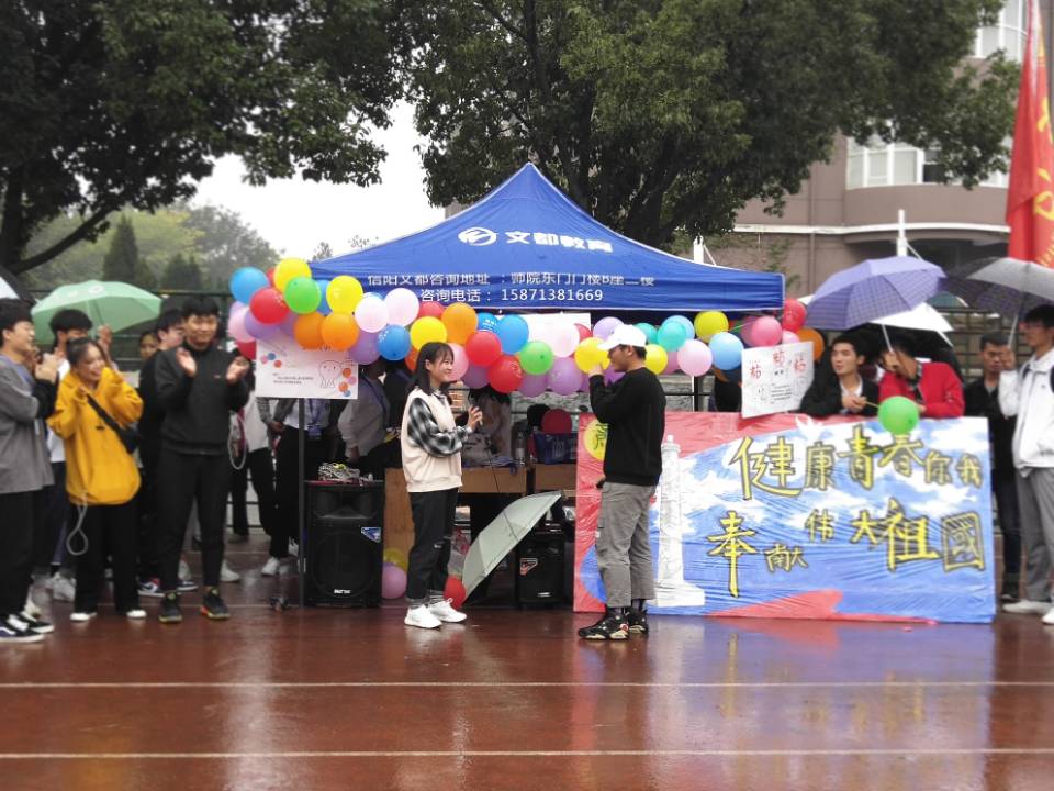 10月22日下午,太阳网集团tcy8722在学校田径场开展了以“健康青春你我,奉献伟大祖国”为主题的第七届心灵派对活动。党总支书记张富庄、团总支书记盛士蔚、全体辅导员老师和2019级同学参加了本次活动。