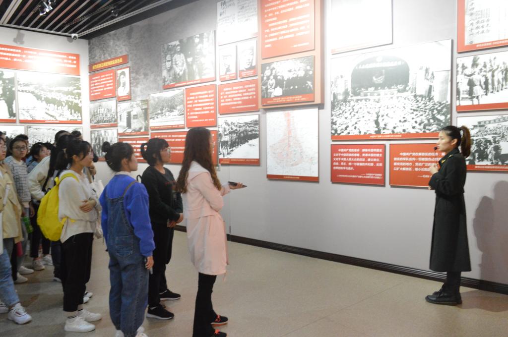师生走进纪念馆,在讲解员的带领下先后参观了“千里跃进将军故里”、“红色苏区,共铸辉煌”、“红色土地,艰苦卓绝”、“中原突围,铁流千里”等七个展厅,仔细观看了文字、图片、实物等珍贵历史资料,认真聆听讲解员讲解,回顾了鄂豫皖革命根据地波澜壮阔的光辉历史,大家在一幅幅图片,一件件文物前驻足。缅怀了革命先烈们的丰功伟绩。深切感受鄂豫皖人民坚定不移的革命信念,不屈不挠的革命精神和“大别山28年红旗不倒”的革命气概。随后,大家深入了解以“悟初心、守初心、践初心”为主线的“不忘初心、牢记使命”主题展览。通过一件件珍贵的革命文物和一幅幅生动的历史照片感受革命先烈为祖国解放事业不畏艰难、勇于斗争的大无畏精神。两个多小时沉浸式教育,使大家的心灵受到了洗礼,思想得到了升华,进一步坚定了理想信念。