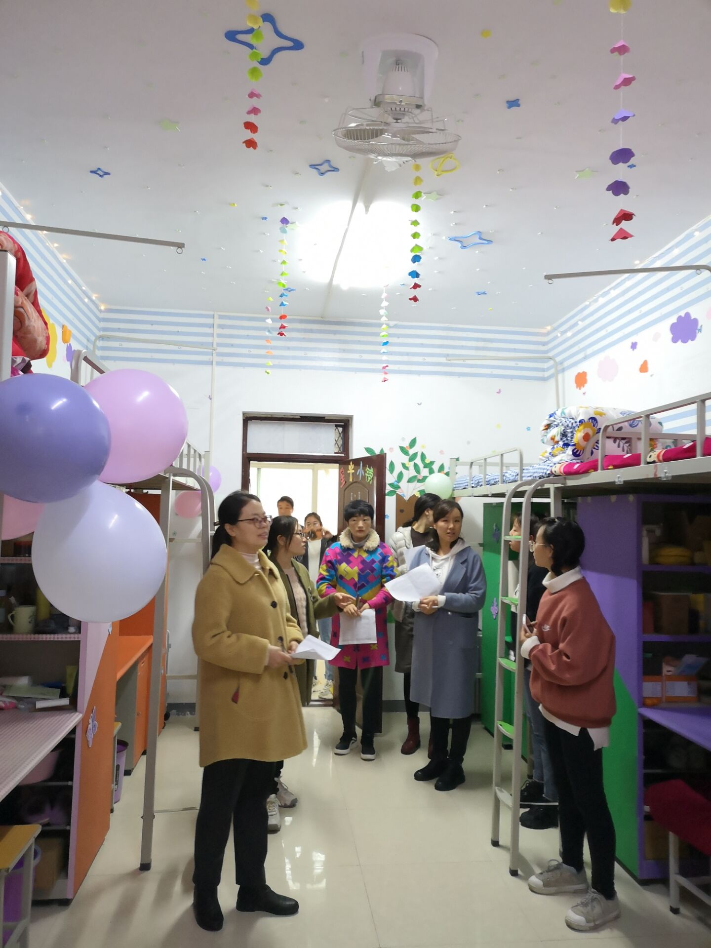为了进一步加强学生公寓安全管理,增强同学们的安全意识,迎接学校公寓文化节,为同学们营造整洁、舒适的宿舍生活环境,11月17日,太阳网集团tcy8722党总支书记胡秀云、学工秘书董高丽和全体辅导员老师一起深入学生宿舍进行走访。