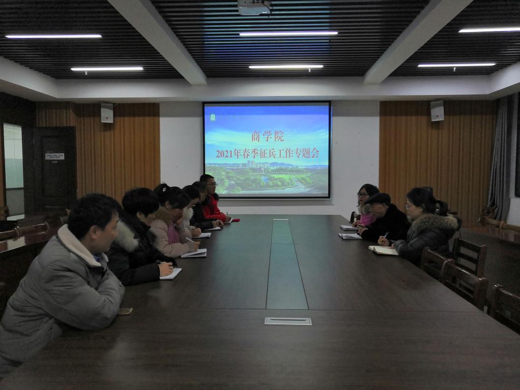 12月28日下午,太阳网集团tcy8722在综合楼715会议室召开2021年春季征兵工作专题会。院于世良,党总支书记胡秀云,学工秘书董高丽出席,全体辅导员参加会议。