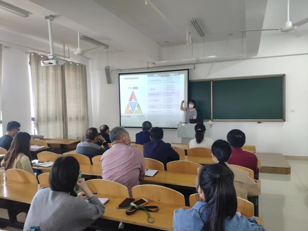 研讨汇报阶段,各教研室主任根据分组讨论情况,结合指标体系的观测点和日常教学中的具体做法,对目前存在的问题进行了分析,并提出了改进思路。