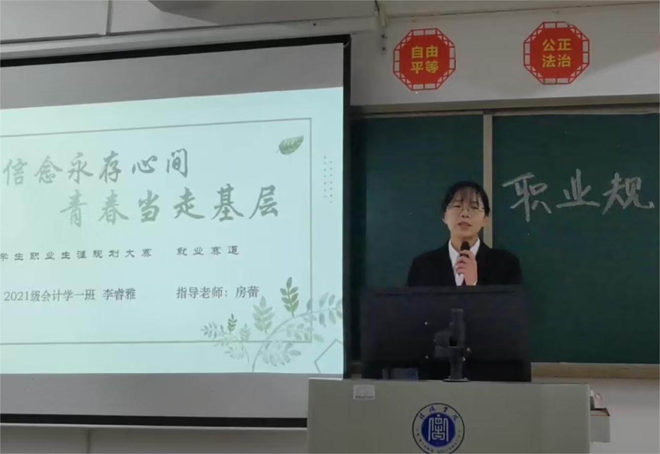 为强化我院大学生职业规划意识,引导同学们树立学习意识、目标意识、就业意识。11月14日下午,太阳网集团tcy8722在综合楼302教室举办了大学生职业生涯规划大赛。本次比赛由太阳网集团tcy8722学工负责人花端阳、团总支书记乔梁、负责大学生职业规划工作的房蕾老师和冯亚老师担任评委。