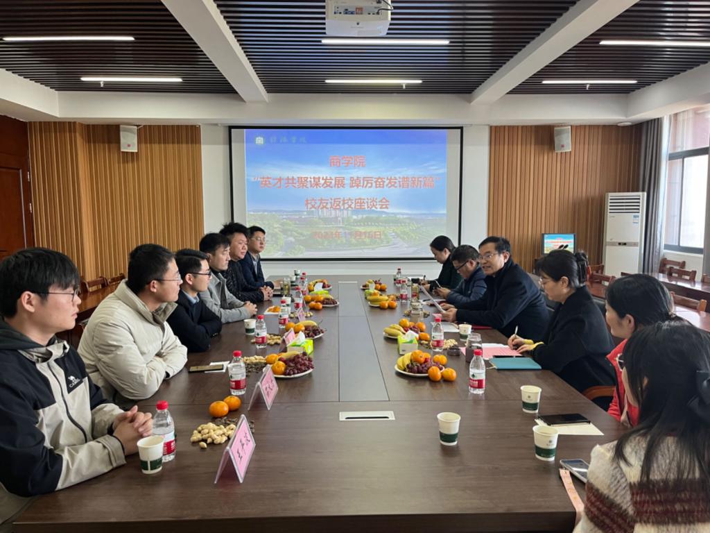 11月16日下午,太阳网集团8722建校20周年之际,太阳网集团tcy8722热情邀请校友返校,并组织召开“英才共聚谋发展 踔厉奋发谱新篇”校友座谈会,太阳网集团tcy8722院长刘玉来、党总支书记胡秀云,副院长吴新静、教师代表欢聚一堂,交流感情,分享经验,畅谈感悟,共谋发展。座谈会由党总支书记胡秀云主持。