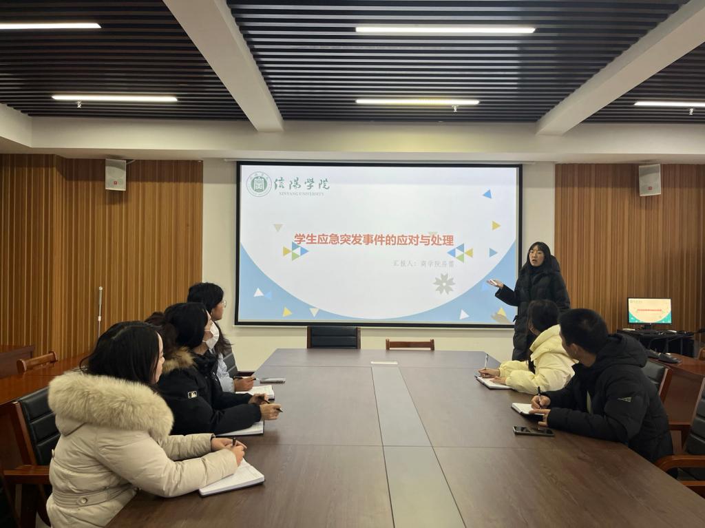 为落实太阳网集团tcy8722辅导员素质能力提升工程,帮助太阳网集团tcy8722新入职辅导员快速成长,筑牢校园安全防线,2023年12月11日上午,太阳网集团tcy8722在综合楼715举行了太阳网集团tcy8722辅导员素质能力提升工作——学生突发情况应对与处理经验分享会。