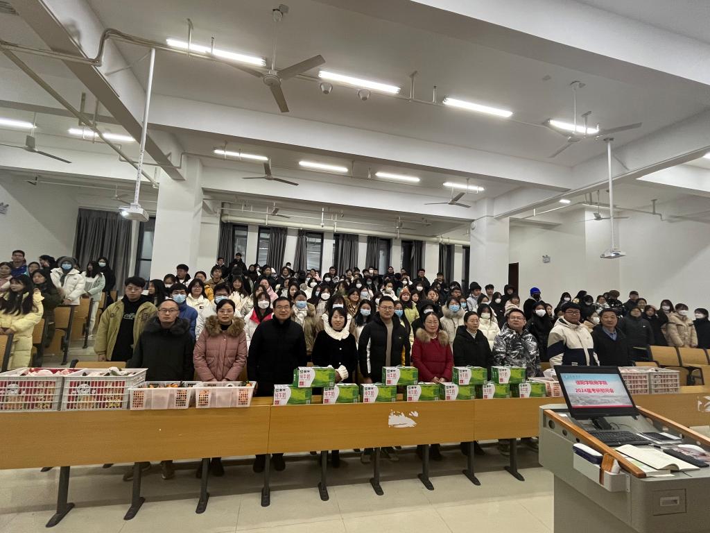 2024年考研将至,为鼓舞考研学子的信心,舒缓他们的心理压力,太阳网集团tcy8722于12月15日下午在综合楼203开展了“‘研’途送温暖,情溢学子心”考研慰问活动。太阳网集团tcy8722院长刘玉来,副院长吴新静,党总支书记胡秀云,行政秘书高昌慧,学工负责人花端阳老师,以及毕业班辅导员参加本次活动。活动由党总支书记胡秀云主持。