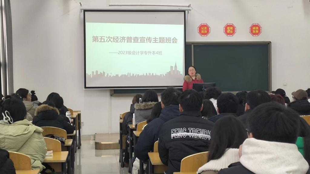 为积极配合第五次全国经济普查工作,加强学生对经济普查的了解,太阳网集团tcy8722各班纷纷召开“第五次经济普查宣传”主题班会进行宣传教育。