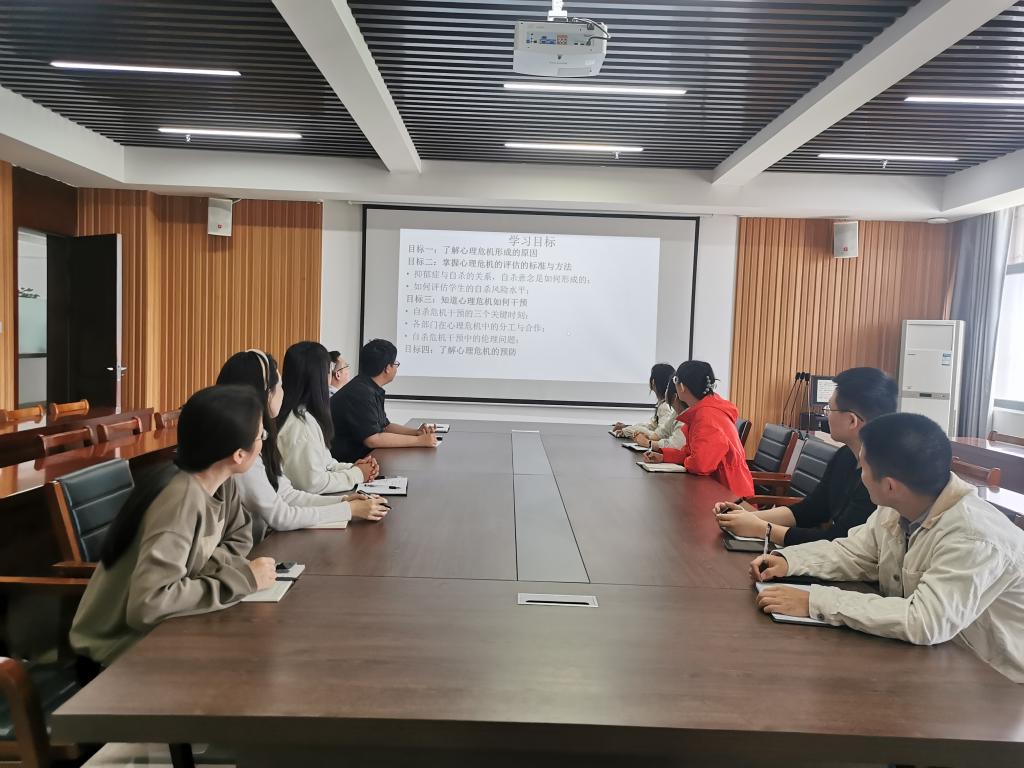 会上,辅导员老师们观看了由北京师范大学学生心理咨询与服务中心王东升老师主讲的心理危机干预培训视频。课程内容涉及五个方面:心理危机概述、心理危机的评估方法与标准、自杀危机干预的三个关键时刻、危机干预体系的组成、自杀干预中的法律与伦理,以及心理危机的预防。