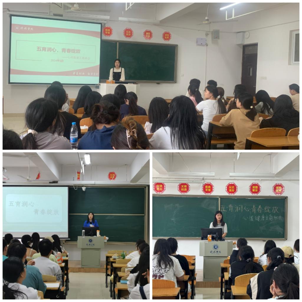 为进一步提高大学生的心理素质,促进大学生身心健康和谐,宣传普及心理健康知识,深入开展心理健康教育,我院围绕“五育润心,青春绽放”主题,扎实开展了丰富多彩的心理健康教育活动。