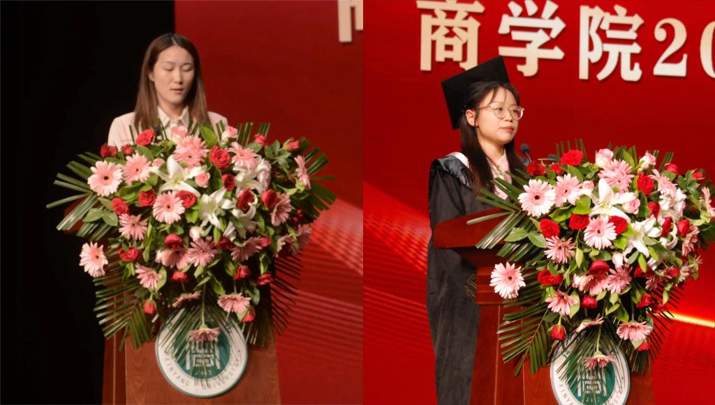 副校长王强发表讲话。他代表学校向圆满完成学业的2024届毕业生们表示热烈的祝贺和最美好的祝愿!他表示2024届毕业生在学校的求学之路上,增长了知识,锤炼了品质,锻炼了技能,他们勤劳的“耕耘”终于“开花结果”,在学校的历史长河中留下了光荣的“印记”。王校长教导同学们在这个充满变革的时代,需要的不仅是商业精英,更需要的是具有全球视野、社会责任感和人文关怀的商业领袖,愿大家将成为这样的人,用智慧和勇气去解决复杂的问题,用热情和毅力去实现伟大的梦想。他鼓励同学们勇敢地去追求,坚定地去实践,不断地去学习,并由衷地祝愿同学们在未来的旅程中,不忘初心,砥砺前行,用智慧和责任书写属于自己的辉煌篇章,欢迎毕业生们常回家看看。