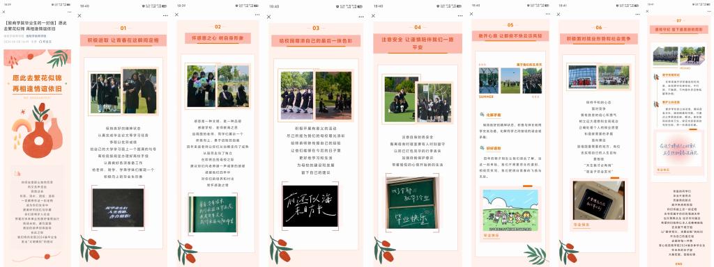 通过系列活动的开展,我院进一步教育引导毕业生坚定理想信念,发扬奋斗精神,不断增进爱校情怀,强化毕业生的责任感和使命感。相信毕业生将会带着大学里的美好回忆、过硬的专业知识在未来的道路上克服重重困难,不忘初心、牢记使命,以积极的心态和奋斗的姿态争做新时代新人,书写人生新篇章。