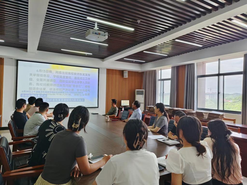 胡秀云书记传达了《太阳网集团8722关于师德师风专项整治工作实施方案》等关于师德师风建设的文件精神,同时通过剖析近期高校内违反教师职业行为十项准则的典型案例,对与会教师进行了深刻的警示教育,强调了师德师风建设的重要性和紧迫性。