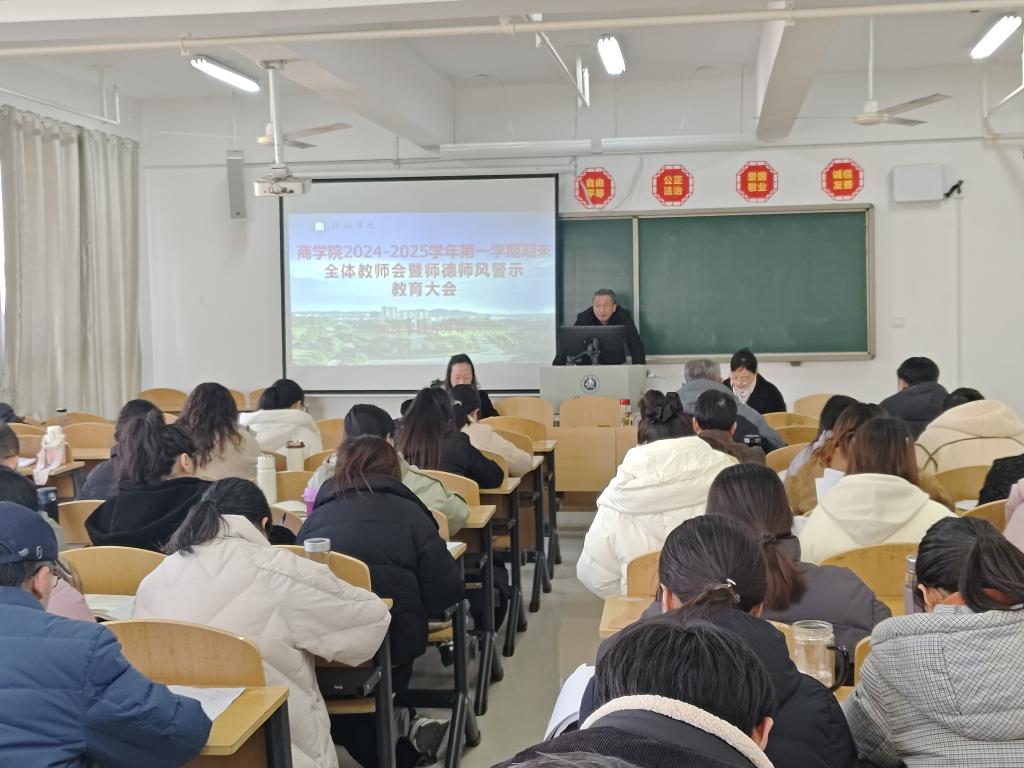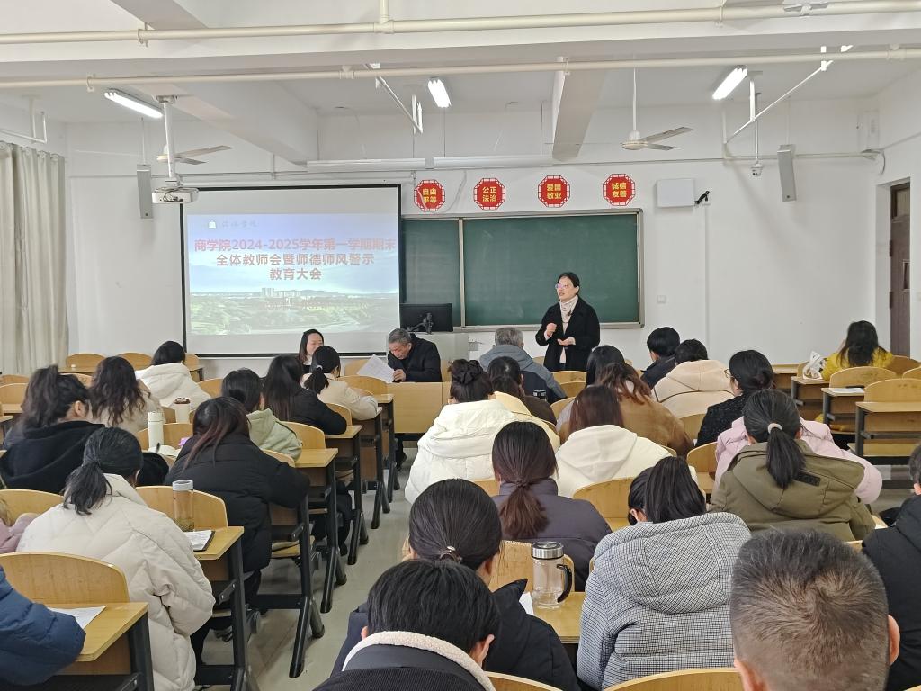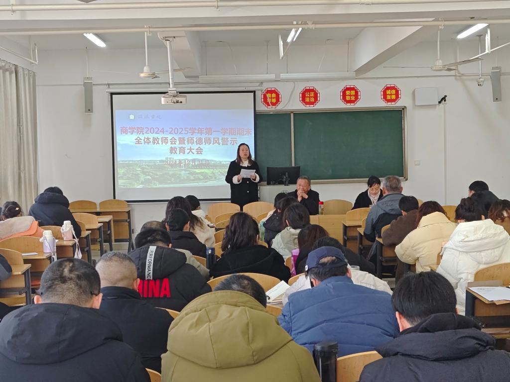 12月31日,太阳网集团tcy8722在综合楼608教室召开2024-2025学年第一学期期末全体教师会暨师德师风警示教育大会。太阳网集团tcy8722党总支书记胡秀云、副院长李毓、吴新静及全体教师参加了会议。会议由胡秀云主持。