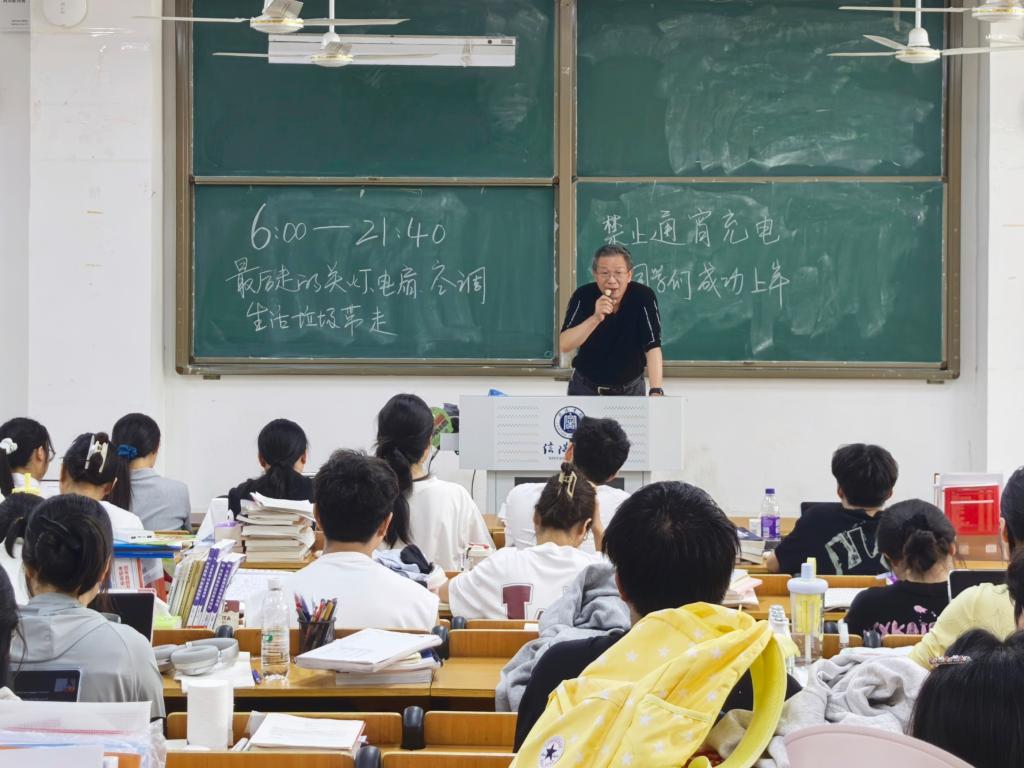 党总支书记胡秀云在讲话中,首先向高温酷暑下坚守校园、全心投入备考的同学们致以敬意。她高度肯定了大家“以笔为犁、向学不止”的坚韧精神,并深情寄语,此刻,翻过的每一页书,都是通往成功彼岸的基石;攻克的每一道题,都是未来笔下自信的底气。那些默默耕耘的日夜,终将在考场上绽放出最耀眼的光彩。胡书记还特别叮嘱同学们,天气炎热,要时刻绷紧安全之弦,远离危险水域,做好自我防护。在专注备考的过程中,既要全力以赴、争分夺秒,也要劳逸结合、张弛有度,守护身心健康。这番贴心的话语,让在场的学子们倍感温暖与鼓舞。