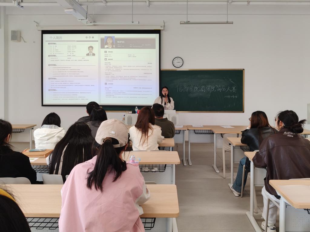 活动现场,涂飞宇老师率先开展简历撰写专题指导,围绕简历核心原则、模块拆解、撰写技巧及避坑指南等关键内容,为参赛同学进行细致讲解。从“一页纸原则”的篇幅把控、“针对性原则”的岗位定制,到教育背景、实习经历、技能证书等重要模块的高分撰写逻辑,涂老师逐一拆解要点、举例说明,帮助同学们理清简历制作思路,掌握实用撰写方法。