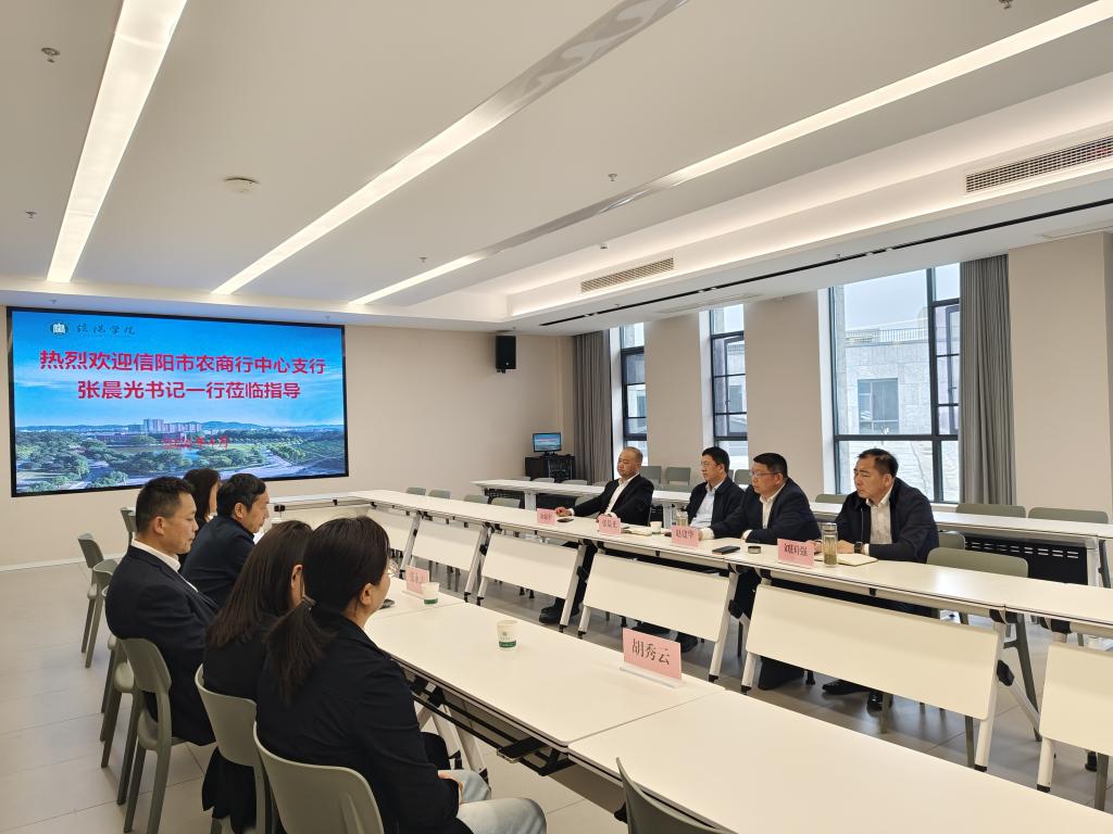 活动伊始,校长助理张永志代表学校对张晨光书记一行表示热烈欢迎和衷心感谢,并简要介绍了学校办学历史、人才培养特色及服务地方经济发展的主要成果。他表示,信阳市农商行是地方金融的主力军,在服务小微企业、助力乡村振兴等方面作用突出。希望以此次交流为契机,进一步深化校企合作,为学生搭建实践实训、就业对接的优质平台,实现校地、校企互利共赢。