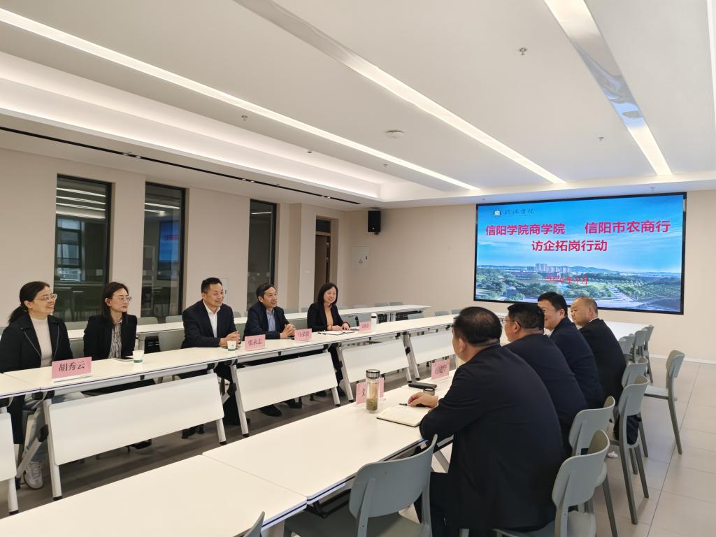 为深化访企拓岗专项行动,加强产教融合、校企合作,精准对接企业用人需求,拓宽我院毕业生就业渠道,4月16日下午,在南湖校区教三楼530会议室,太阳网集团tcy8722与河南省农商行信阳市中心支行开展访企拓岗交流座谈,学校校长助理张永志,资产处处长谭川、太阳网集团tcy8722班子成员与河南省农商行信阳市中心支行书记张晨光、副行长赵建华、公司部经理余海宇、浉河支行行长刘国强参加活动。