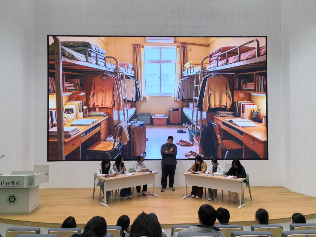 本次展演活动共有八个小组同台竞技,各小组紧扣宿舍人际关系核心主题,立足大学生真实校园生活,自主完成剧本构思、角色分配与舞台演绎。舞台上,参演同学情感饱满、表演真挚自然,以细腻的肢体语言和真挚的情感表达,还原了大学生宿舍相处的真实百态,生动展现了学子在人际沟通中学会包容理解、主动自我反思、实现向阳成长的蜕变过程,也让现场每一位观众深刻体会到换位思考、真诚沟通在维系良好人际关系中的重要意义。