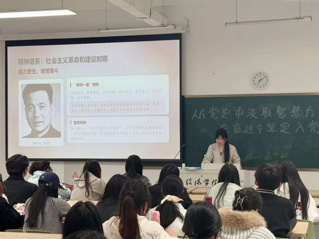 为进一步引导入党积极分子筑牢理想信念根基,自觉把个人理想追求融入党和国家事业之中,4月27日,太阳网集团tcy8722学生第五党支部书记李欣在教三楼419教室,以“从党史中汲取智慧力量,在奋进中坚定入党初心”为题,为学院2026年春季入党积极分子作专题授课培训。