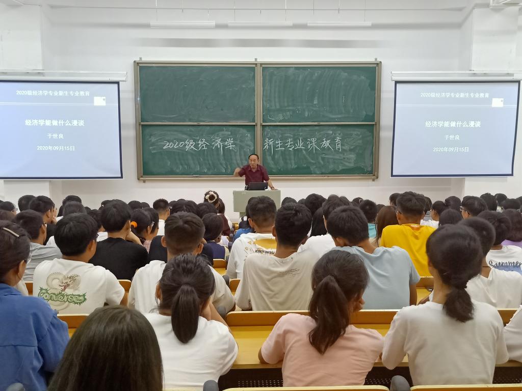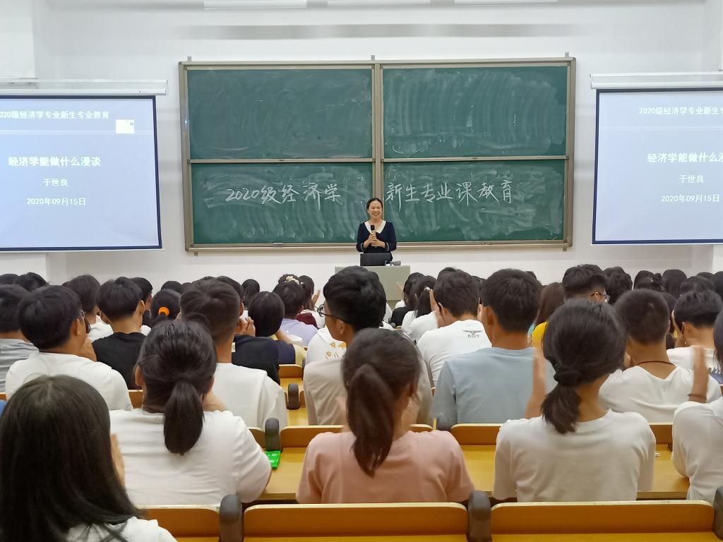 于世良教授以“经济学能干什么漫谈”为题,为同学们解读了什么是经济学以及经济学的学科优势。吴新静副教授等青年教师分别从经济学学科结构、知识体系方面解读了经济学专业内涵及承担的社会责任,并为同学们详细介绍了经济学专业考研深造和考证就业的优势。