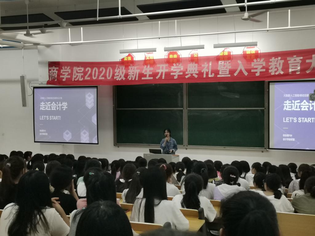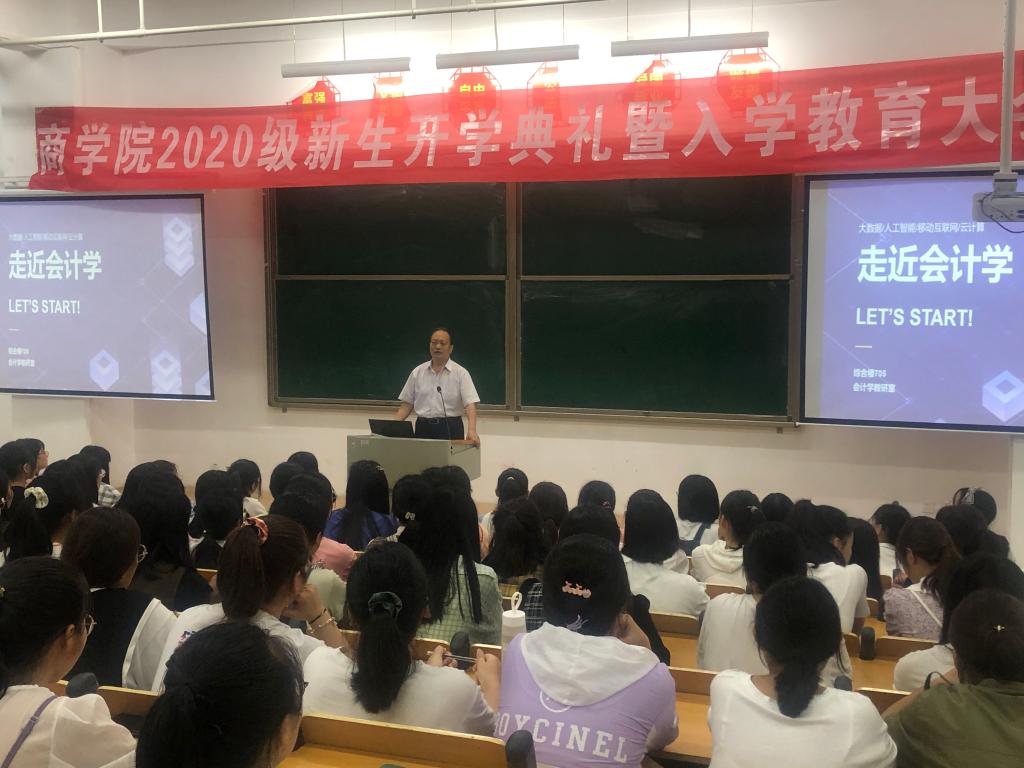 陈东岭教授就会计学专业学生的大学生活安排及专业学习做了详细指导,讲解激情澎湃,点燃了新生们对会计学专业学习的憧憬和热情。何雪晴等青年教师分别从会计学师资力量、财会实训设施、专业课程培养体系、会计学专业如何考取技能证书、考研深造等方面作了详细讲解,鼓励“小20”们戒骄戒躁,勤奋学习,度过精彩的大学生活。