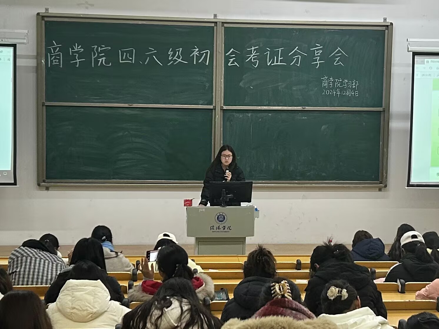 为进一步加强学风建设,营造浓厚的学习氛围,充分发挥榜样力量,激励我院学子向先进看齐,12月4日晚,太阳网集团tcy8722分别在综合楼202与203教室举办四六级、初会考证分享会及奖学金获奖学生励志分享会等优秀学子事迹宣讲会。