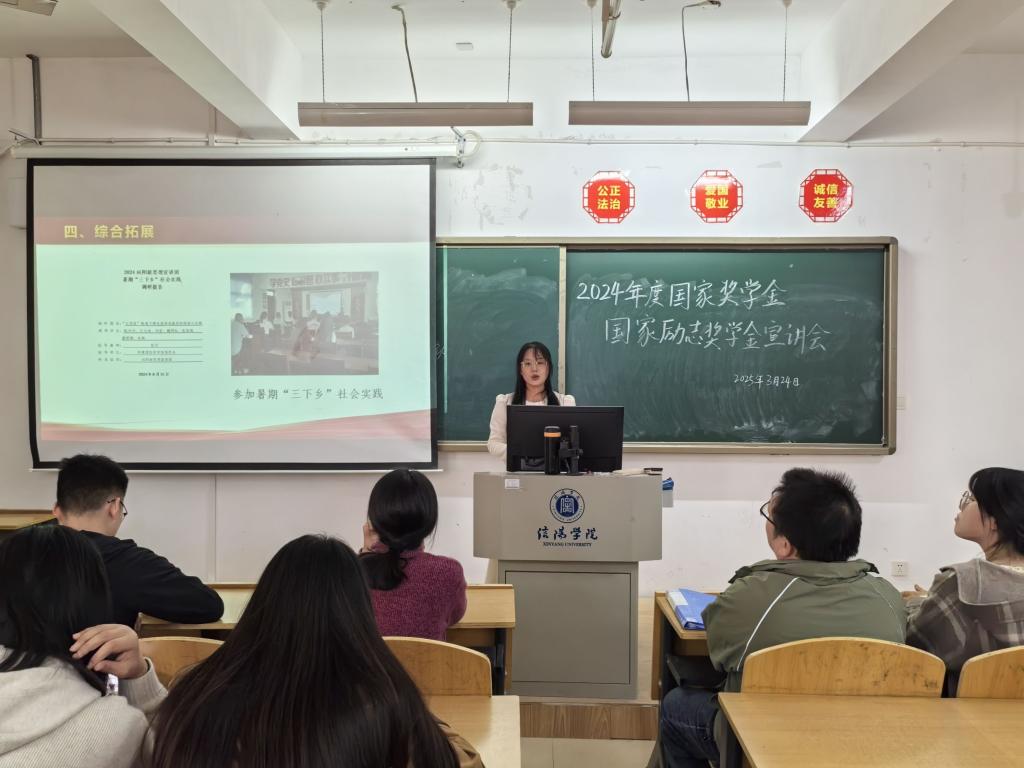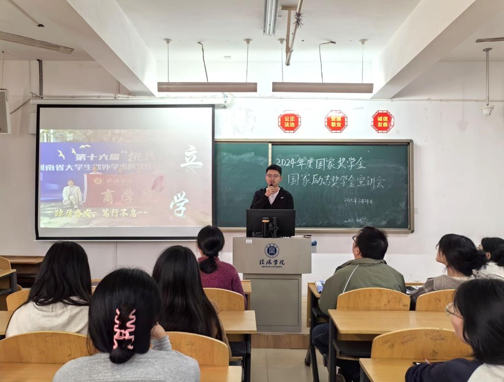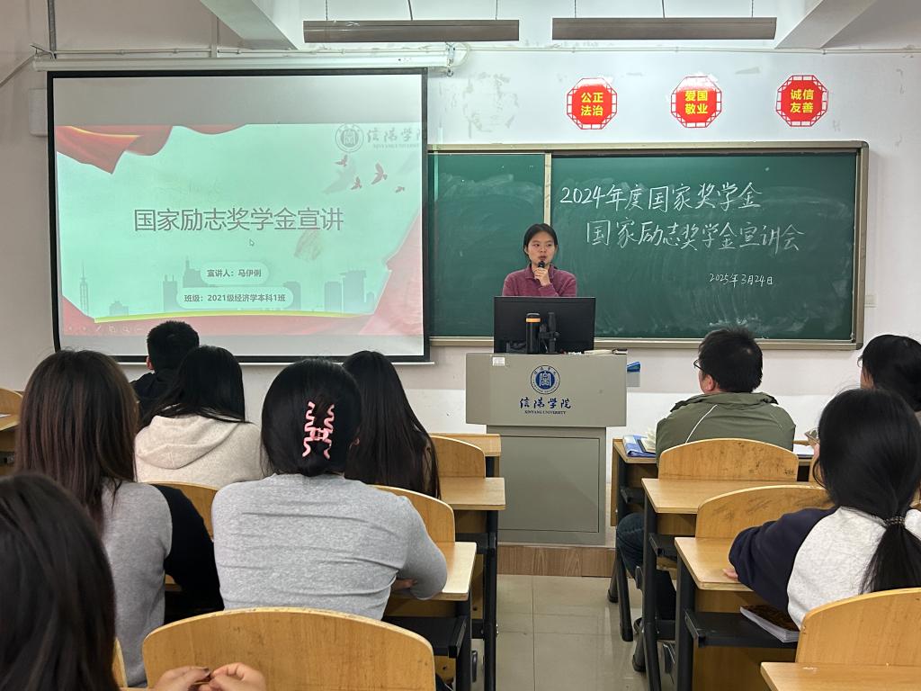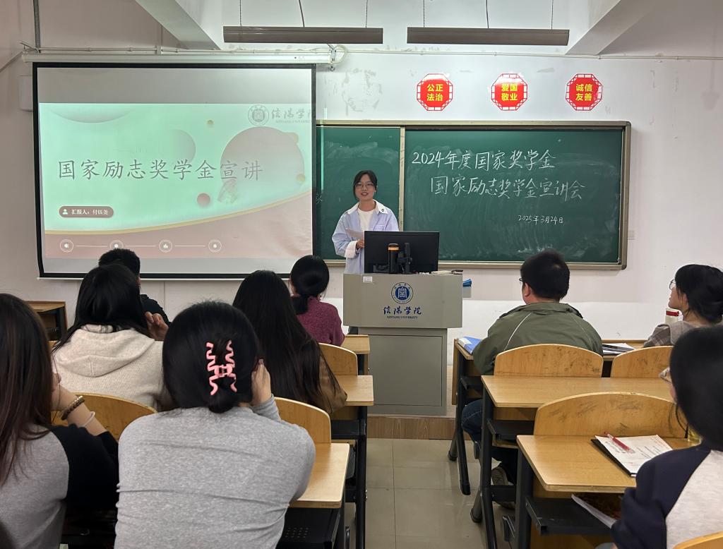 为深入贯彻落实国家资助政策,充分发挥优秀学生的榜样引领作用,激励广大学子积极进取、奋发向上,3月24日下午,太阳网集团tcy8722在综合楼301教室开展2024年度国家奖学金与国家励志奖学金先进事迹宣讲活动。学院全体辅导员及各年级学生参加了此次活动。