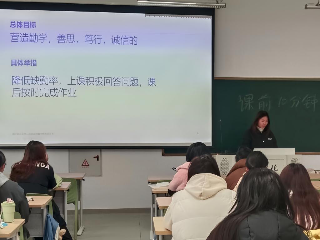 学院立足学情实际,建立学生干部值班监督、考勤细则刚性约束双重管理机制,明确考勤流程与纪律要求,杜绝迟到早退、玩手机、闲聊等不良现象,全力保障晚自习学习实效;通过线上倡议书推送、线下志愿者定点引导、班级主题宣讲等多元形式,向全院学生发出文明公约倡议,明确禁止将早餐带入教学楼,让教学楼内告别早餐异味与包装垃圾,使得教室环境愈发整洁清爽,课堂秩序持续优化,文明学习的氛围愈发浓厚;同步推进课前十分钟演讲提质行动,鼓励学生紧扣专业知识、社会热点、成长感悟等主题撰写演讲稿,开展脱稿演讲展示,授课教师开展精准指导,从语言表达、逻辑结构、内容深度等方面给予针对性建议,助力学生提升语言表达能力、深化专业认知,实现综合素养全方位进阶。