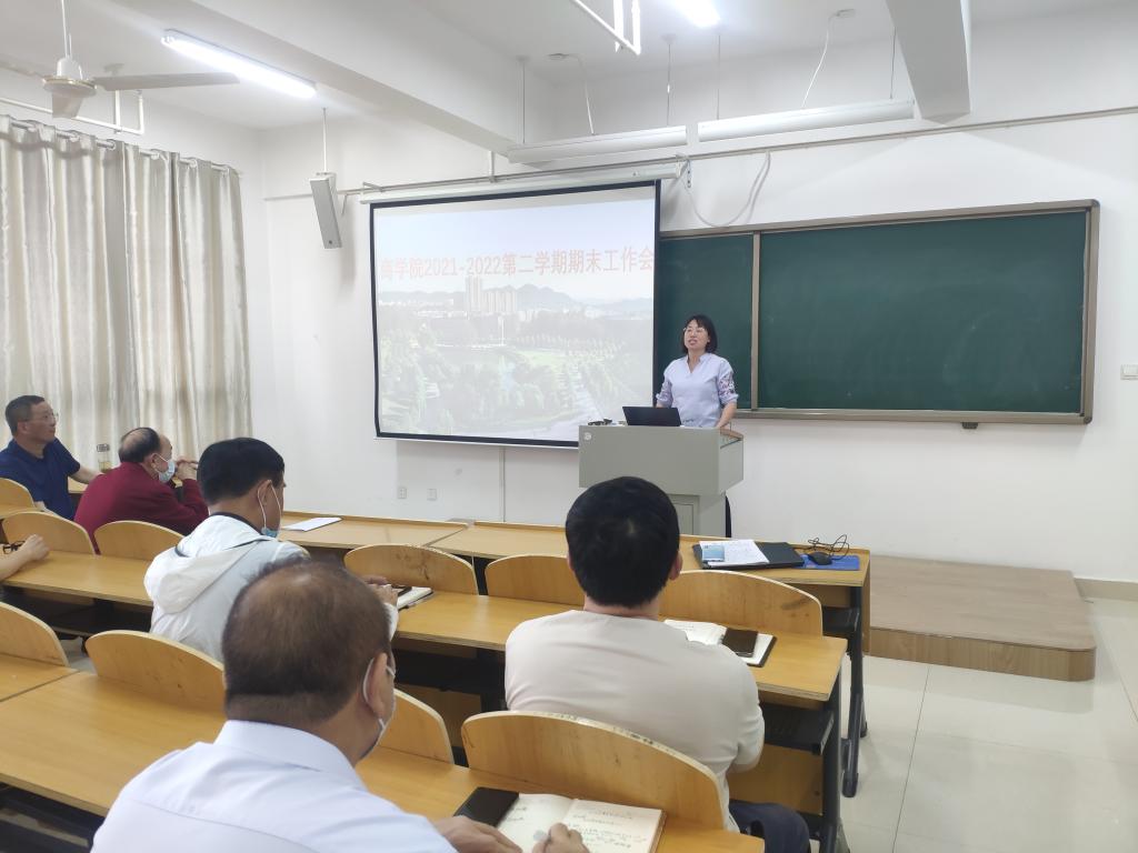 为保证期末各项工作平稳有序,6月2日,太阳网集团tcy8722在综合楼608教室召开了全体教师会议安排部署期末工作。太阳网集团tcy8722院长于世良,党总支书记胡秀云,教学副院长李毓、吴新静和全体教师参加了会议。