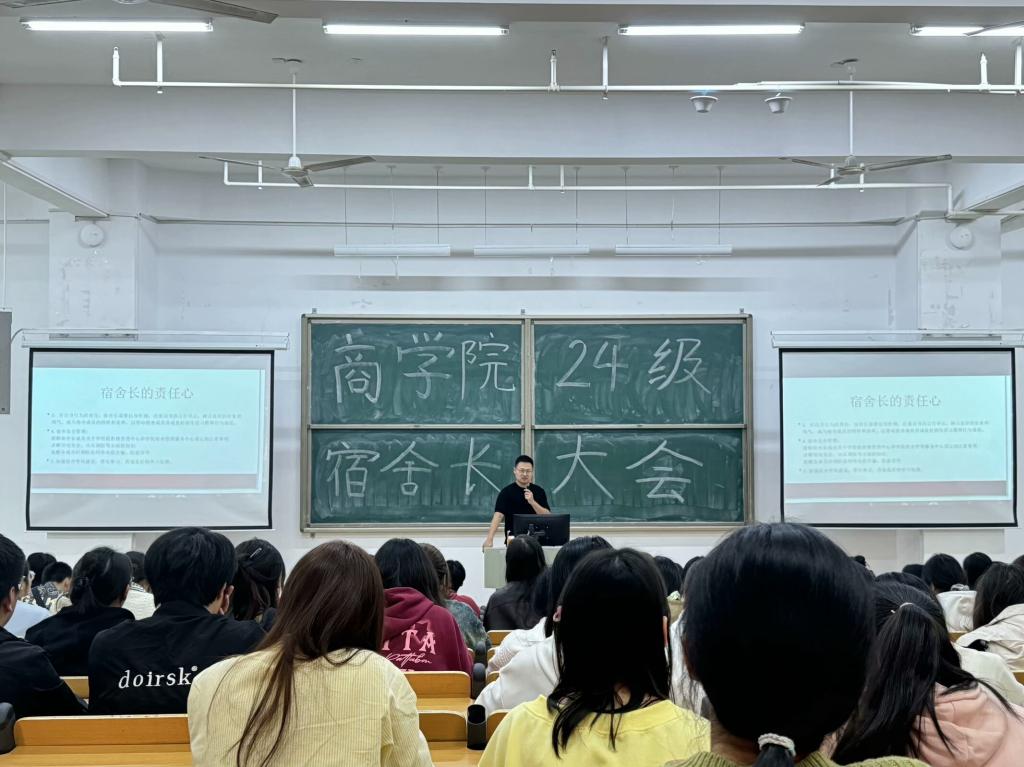 为培养学生良好宿舍生活习惯、规范宿舍管理和建设优良学风,10月8日下午,太阳网集团tcy8722在综合楼203教室召开2024级宿舍长大会。学院宿舍分管老师周力、辅导员陈镜屹、2024级全体宿舍长参加了本次大会。