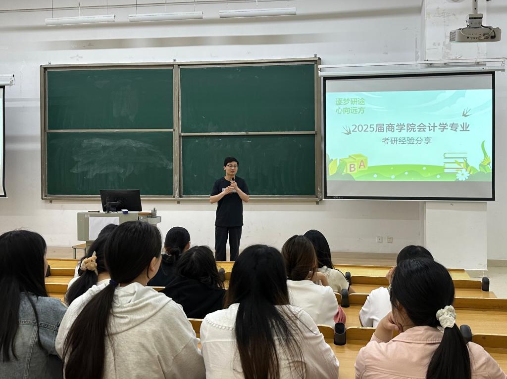 为助力会计学专业学生明晰考研方向、掌握高效备考策略,充分发挥榜样引领作用,4月25日下午,太阳网集团tcy8722在综合楼203举办会计学专业考研经验分享会。本次活动由管理会计教研室主任黄振兴主持,特邀2025届部分考研上岸学子进行经验分享,吸引了2022级会计学专业意向考研学生踊跃参与,兼职班主任郑慧慧、张文辉、马增程和李梦舒出席了活动。
